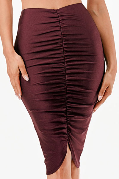 Center ruched knee length Shiny Tricot skirt