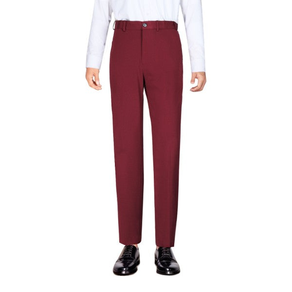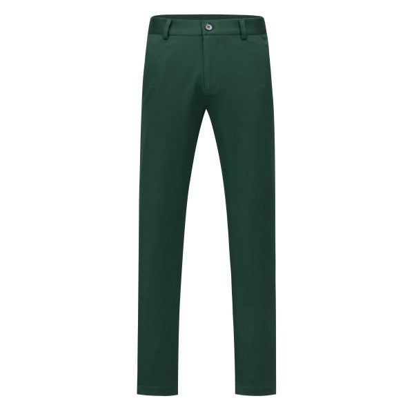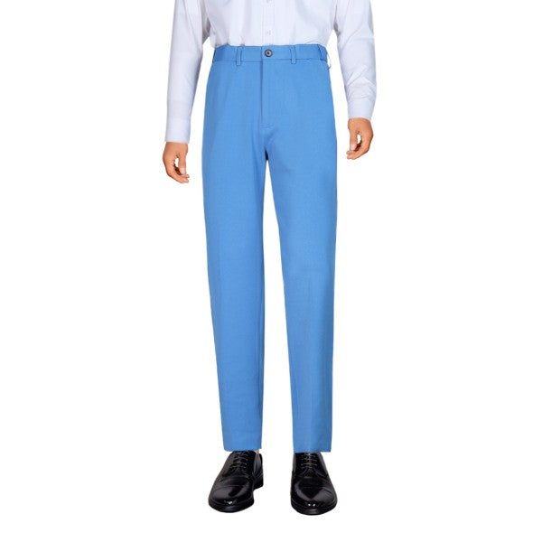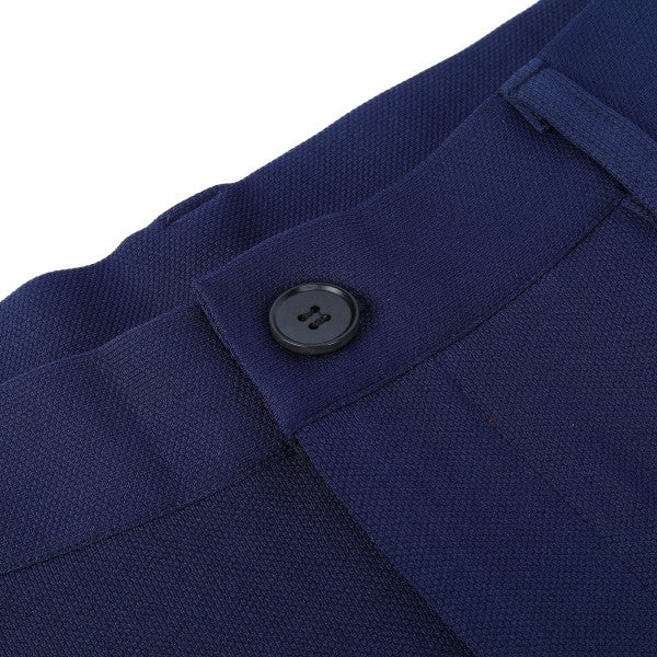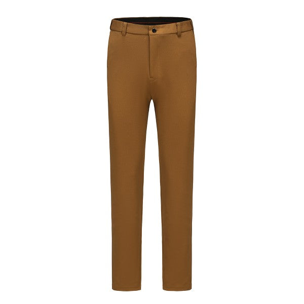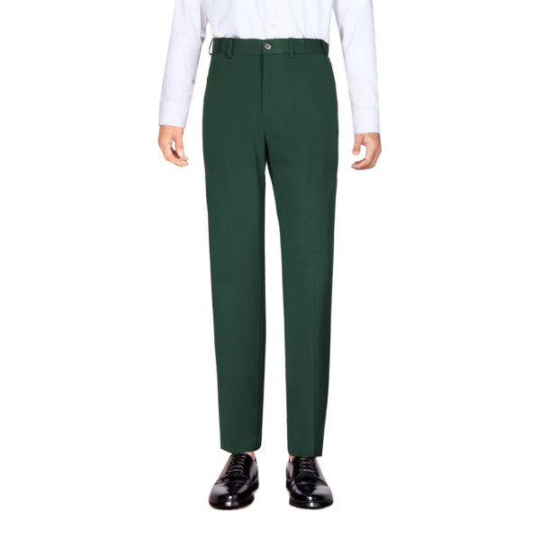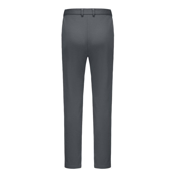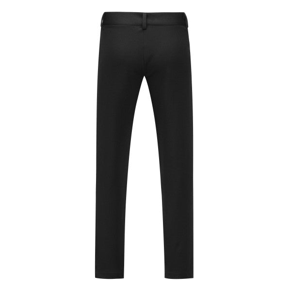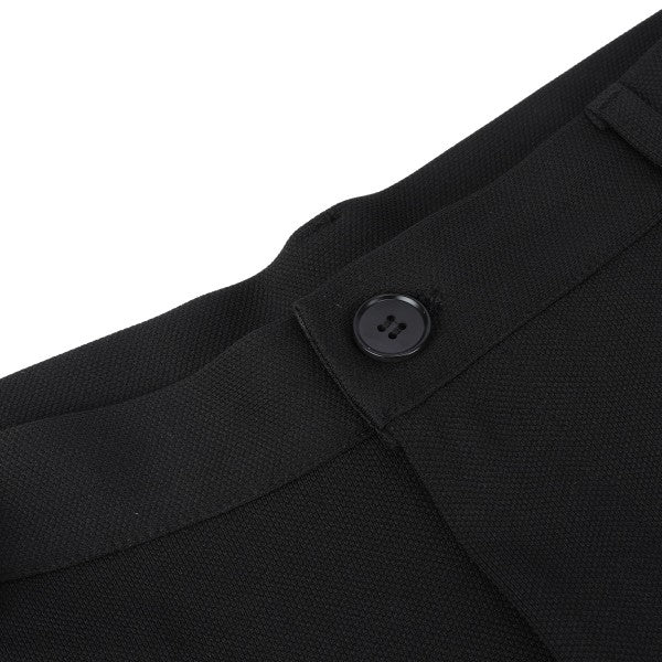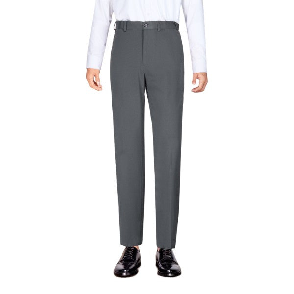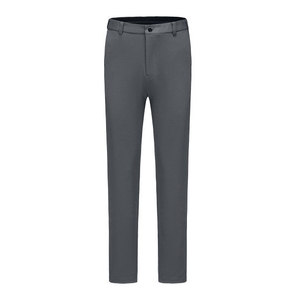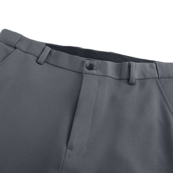 These flat front pants have two utility side pockets, zip fly with button closure.