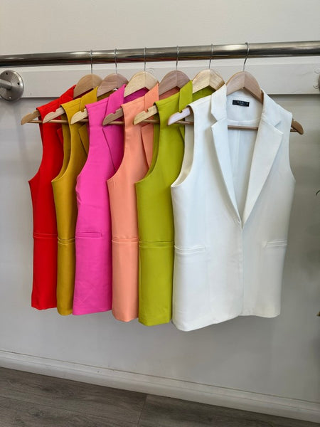Dressy Pleated High waist Shorts with Pockets and front Zipper and Long Vest Set