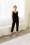 Featuring refined silk straps and intricate lace accents, the Rose Imperial Top is a chic and versatile addition, perfectly complementing the matching pants for an ensemble that effortlessly blends sophistication with understated glamour.
