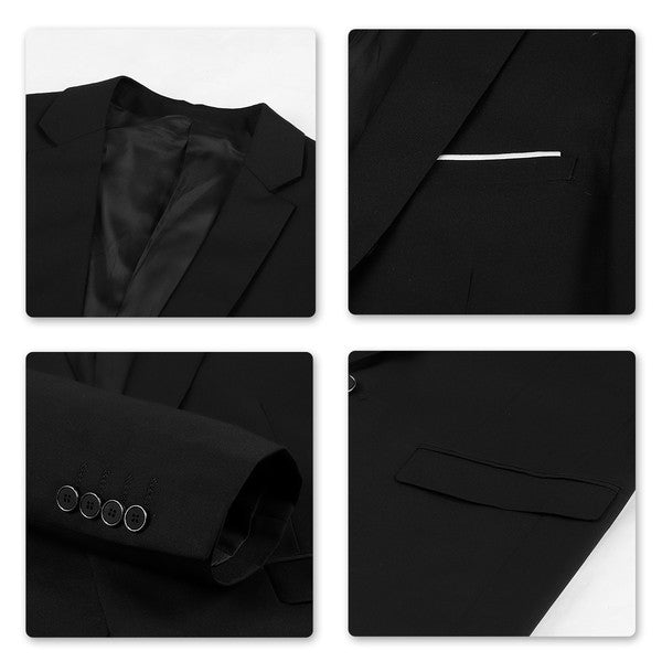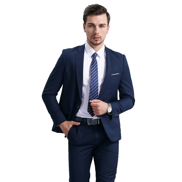 The single breasted suit features a notch lapel, full lining, back centre vent, 2 flap pockets, 1 chest pocket,and a one button as closure. This suit with full shoulder design and slim cut with 3D draping. Slim fit suits little tighter than a regular fit suit, slim fit style makes you look modern and sharp.