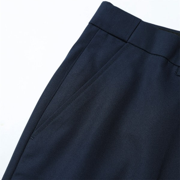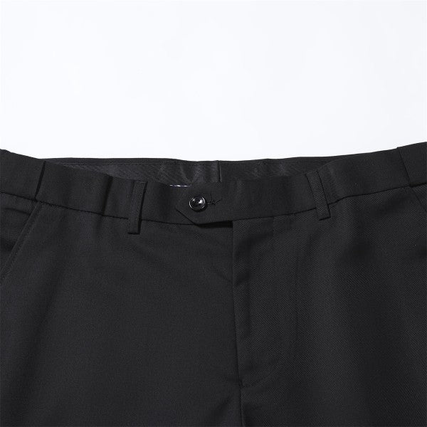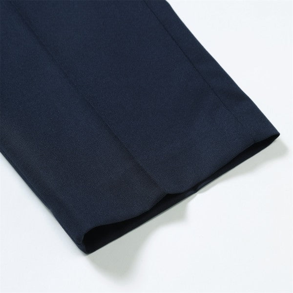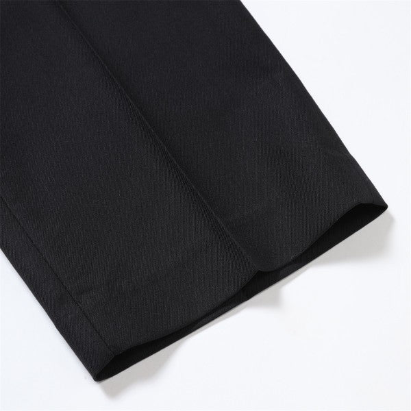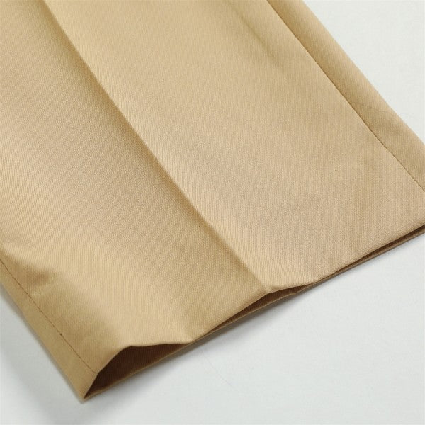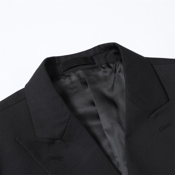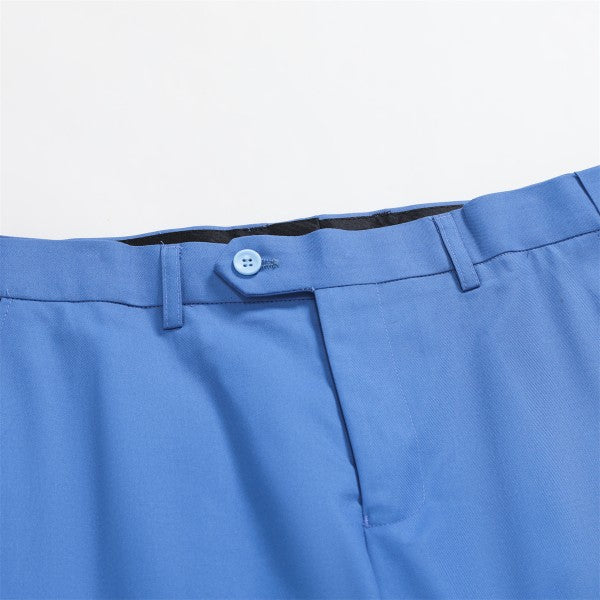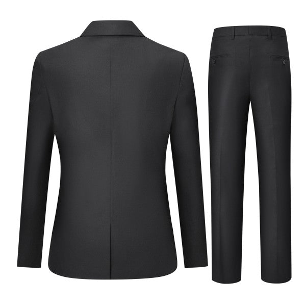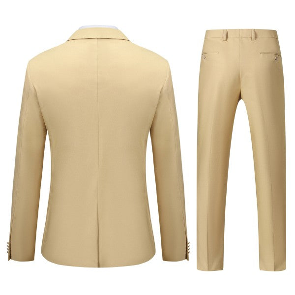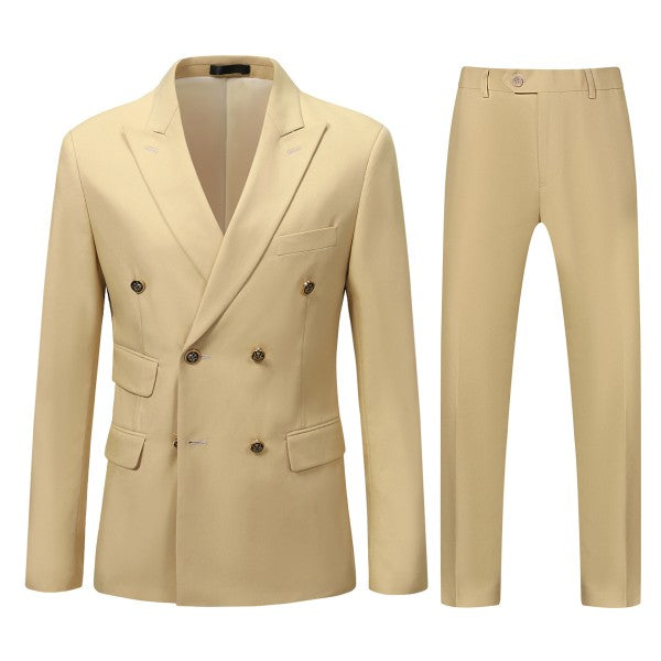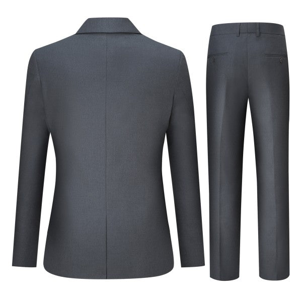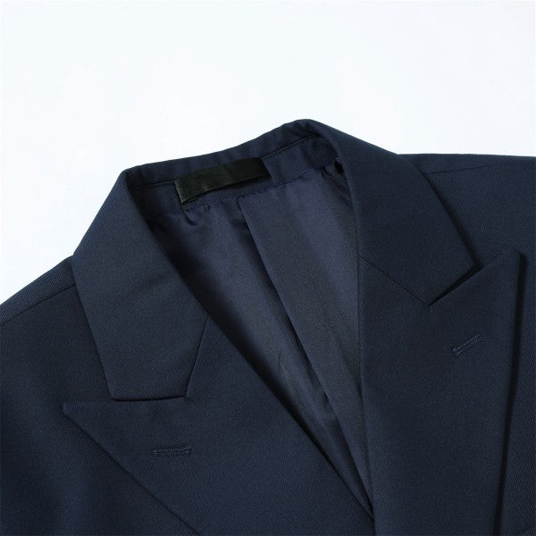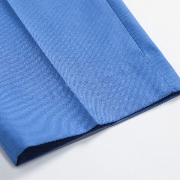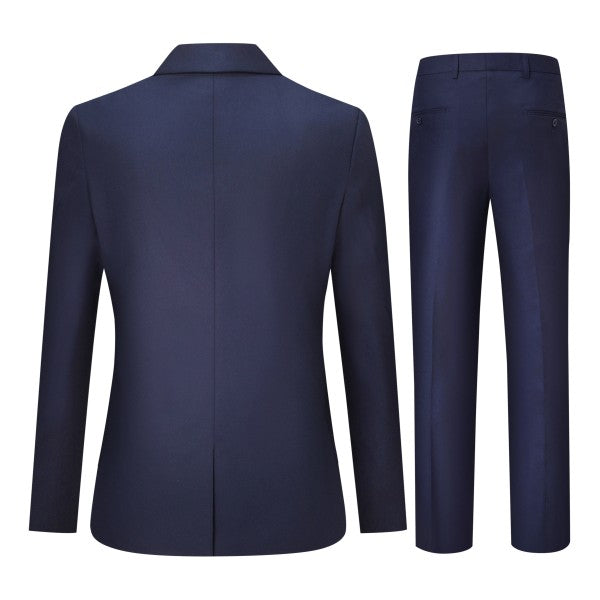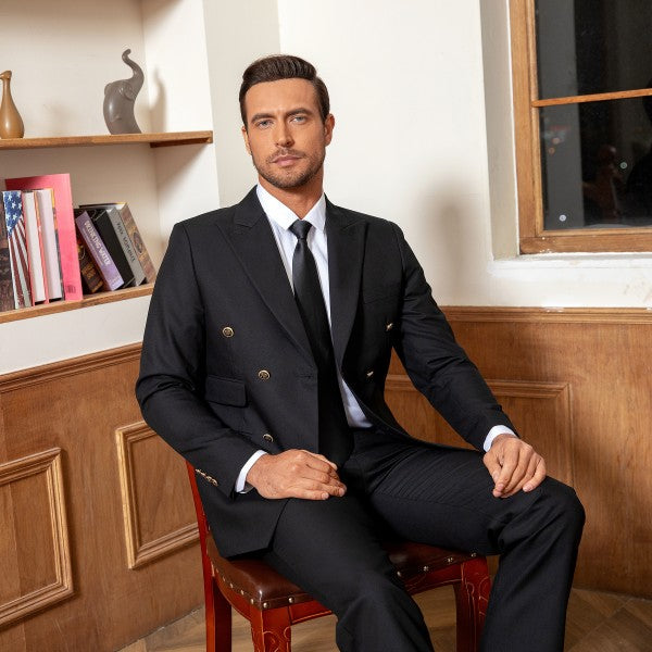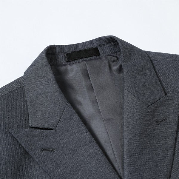 This solid blazer features peaked lapels, double-breasted with two-button closure, four-button cuffs, a decorative chest pocket, 3 utility flap pockets, attached lining with two built-in pockets, these pants features two slant pockets, two button-closure back pockets.