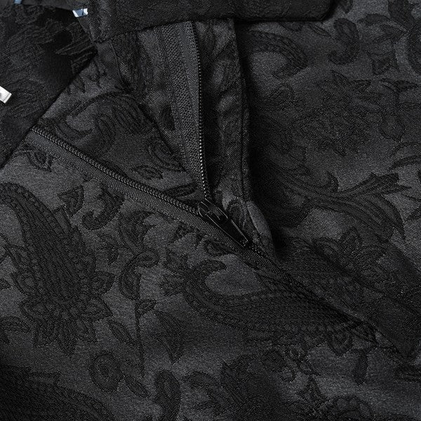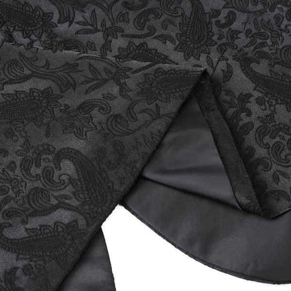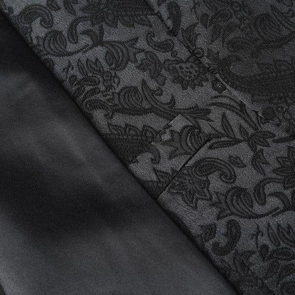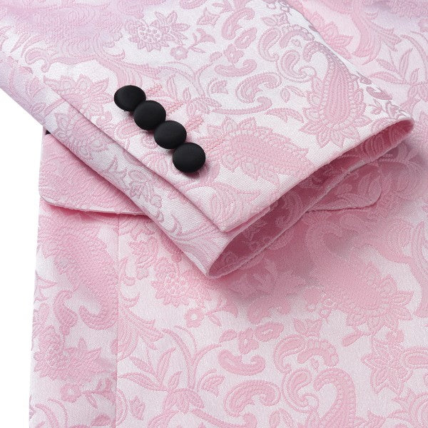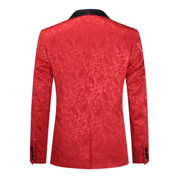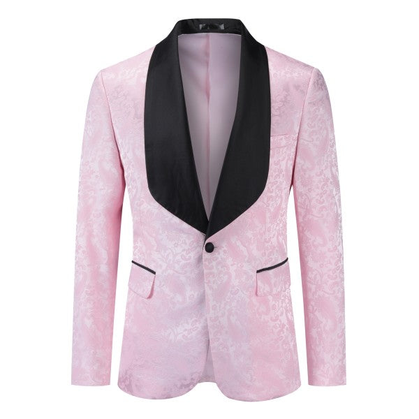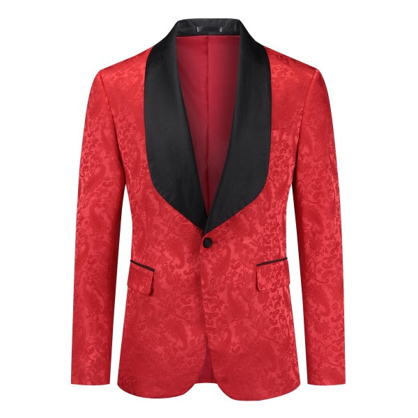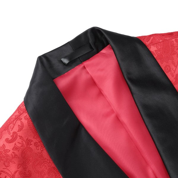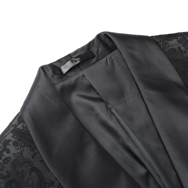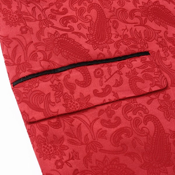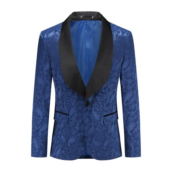 Paisley style with a black shawl lapel, single-button closure, and single-breasted silhouette, perfect for formal occasions. The chest pocket fits a pocket square, and you can pair it with a bow tie or breastpin. Shoulder pads ensure the suit keeps its shape.