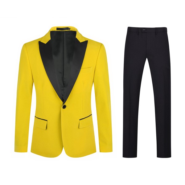 Satin Peaked Lapel, Center Vent, Button Closure, Two Flap Pockets, One Chest Pocket, Combined classic suit culture with modern element.