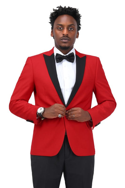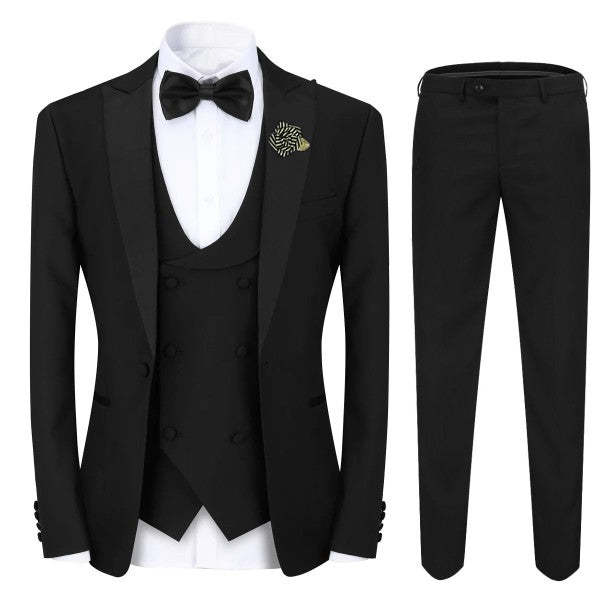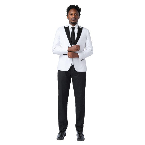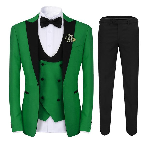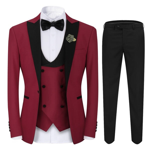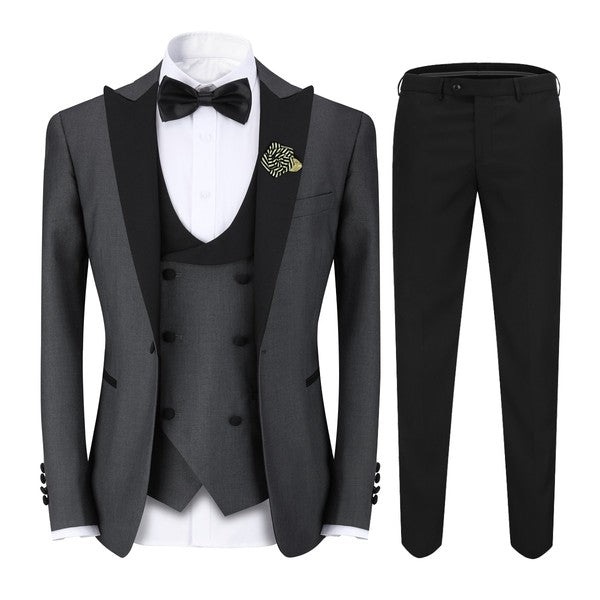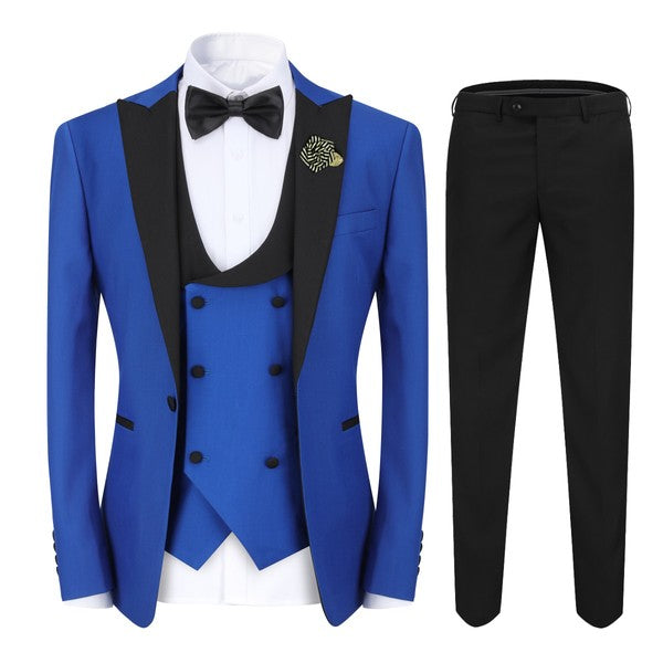 Mens 3 Piece Peak Lapel Contrast Color Tuxedo Set