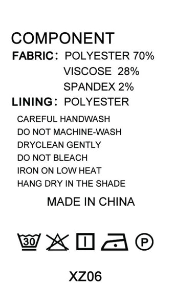Fabric Contents: 70% Viscose, 27% Polyester, 3% Spandex