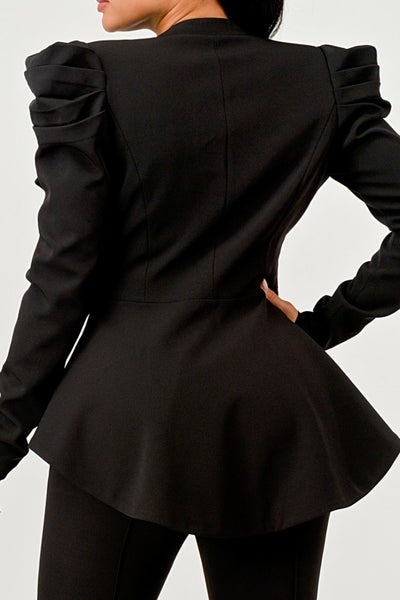 Sculpted hourglass blazer with peplum-style back flare