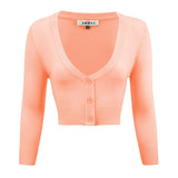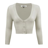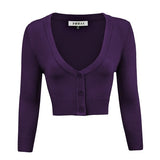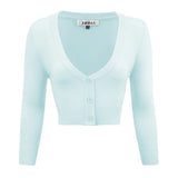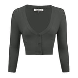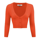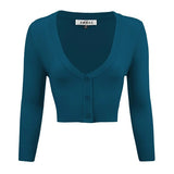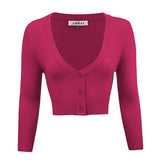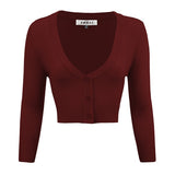 - 18.5-19.5\" Crop Length, 3/4 Sleeves, Button Down, V-Neck Bolero Shrug Knit Cardigan Sweater for Woman that Hits Upper Waist Point.