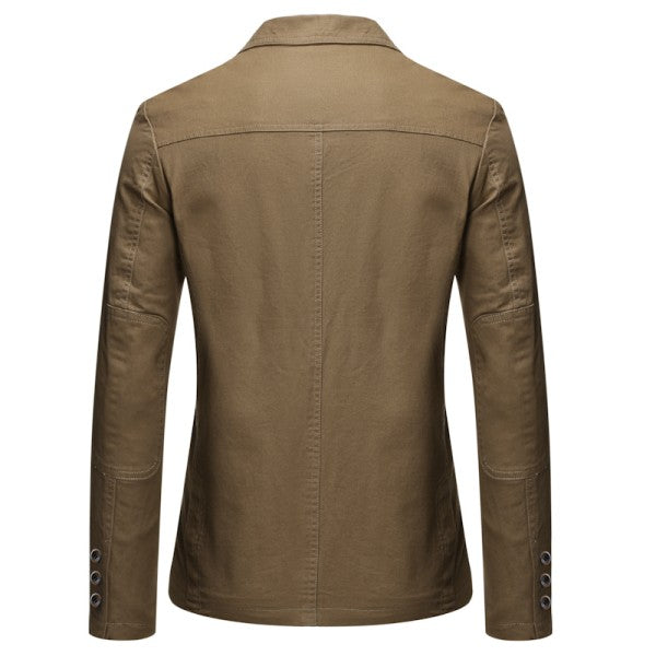 3D slim cut shaped jacket with fabric notched lapel and two real front patch pockets, Featuring top-stitching design, full lined construction, overall nice expressing mature yet elegant.