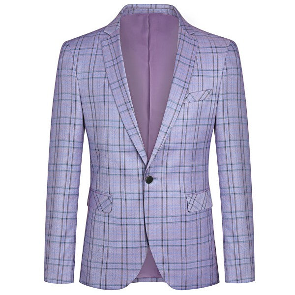 Slim-cut tartan blazer for a tailored fit. Broad-shouldered? Consider one size up. 3D cutting and full shoulder design highlight a man's silhouette. Multi-color options, great for year-round wearing.