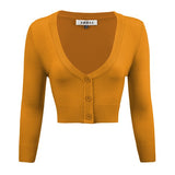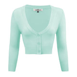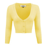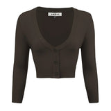 - 14\"-16\" Crop Length, 3/4 Sleeves, Button Down, V-Neck Bolero Shrug Knit Cardigan Sweater for Woman that Hits Upper Waist Point.