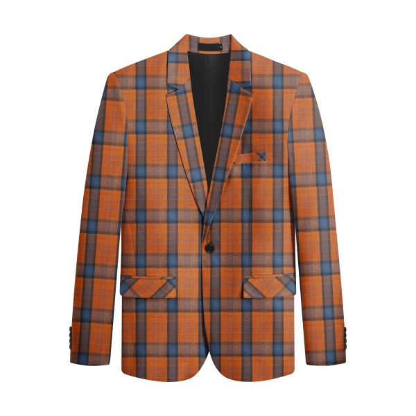 Slim-cut tartan blazer for a tailored fit. Broad-shouldered? Consider one size up. 3D cutting and full shoulder design highlight a man's silhouette. Multi-color options, great for year-round wearing.