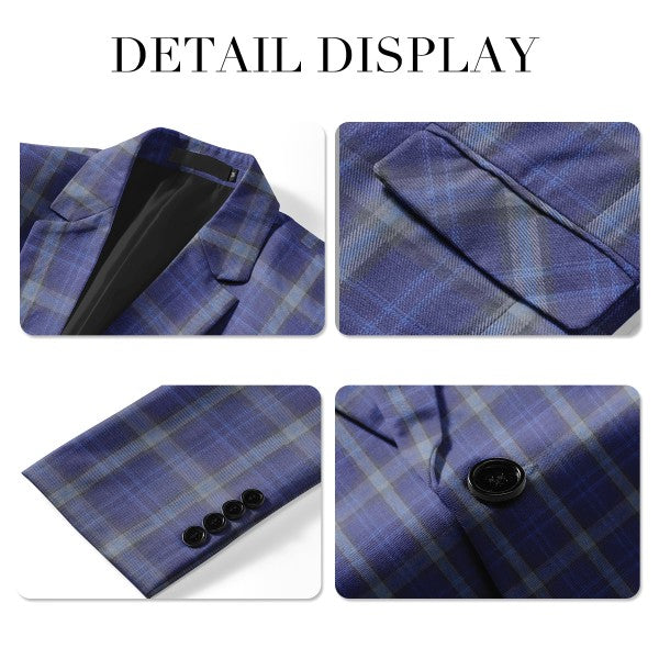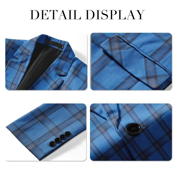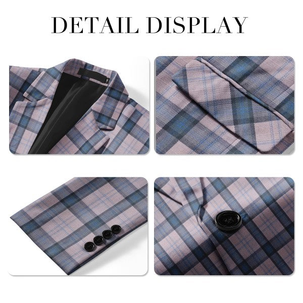 Elegant plaid suit blazer in premium polyester with full lining. True to size, when choosing, check the detailed size in the second product picture, not the Amazon size chart.
